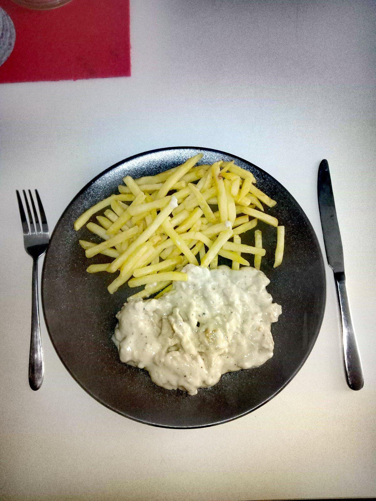 @petra0017 mäsko spravil klasika na cibuľkovom základe a sušené huby pomlel na "prach" a posypal mäso... potom už len prelial šľahačkovou smotanou a trochu zahustil múkou 🙂