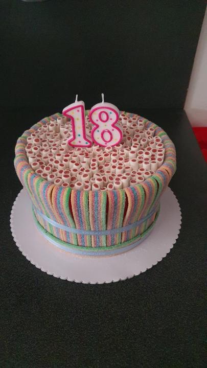 Môj mladší syn miluje pendreky a tak som sa rozhodla mu z nej urobiť tortu k 18ke. Kupuje si ich v predajni Tedy...lenže ako naschvál ich nedostali a ani v Ba ich nemali. Hľadala som tú značku na Googli a našla som..😍 Objednala som 3 krabice po 70 ks. Stačili by len 2, boli veľmi dlhé a musela som ich rezať na polku. Po bokoch som dala ploche kyslé pendrekové pásky. Verím, že bude nadšeny.. Torta je ťažká...váži 5-6 kg..