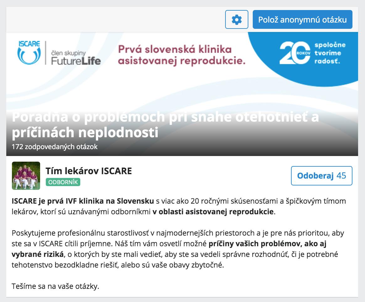 Nemusíte mať hlavu v smútku. Skôr ako "hodíte flintu do žita", pýtajte sa. Tím špičkových lekárov ISCARE (prvá IVF klinika na Slovensku) vám odpovie na otázky v koníkovskej Poradni o problémoch pri snahe otehotnieť a príčinách neplodnosti.