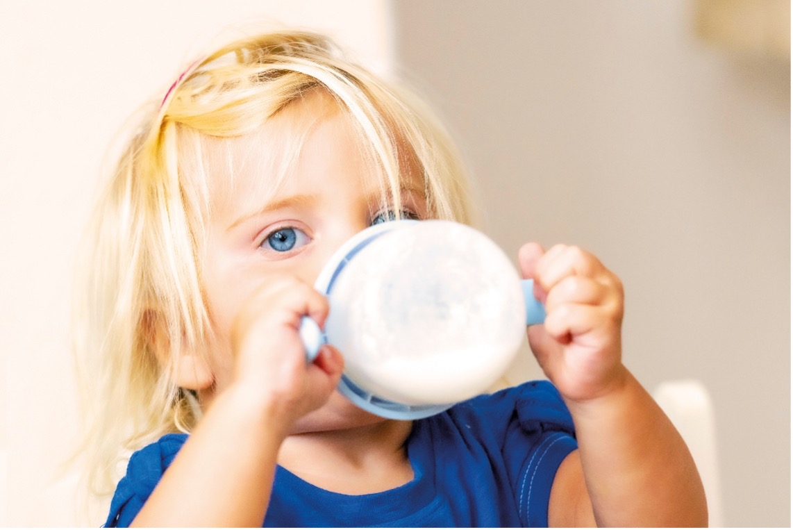 A tu sa na chvíľu zastavme pri tom, čo v tom hrnčeku vlastne je. Možno vám napadlo siahnuť po bežnom kravskom mlieku, veď „už je veľký“, veď má viac než rok. Pediatri by však asi nesúhlasne pokrútili hlavou. Kravské mlieko je síce významný zdroj vápnika, no pre malé brušká batoliat má príliš veľa bielkovín a naopak, zúfalo málo železa. Práve železo je veľmi dôležitý prvok, ktorý batoľa potrebuje pre správny vývoj mozgu². Dostatočný príjem železa pomáha dieťaťu rozvíjať sa naplno.