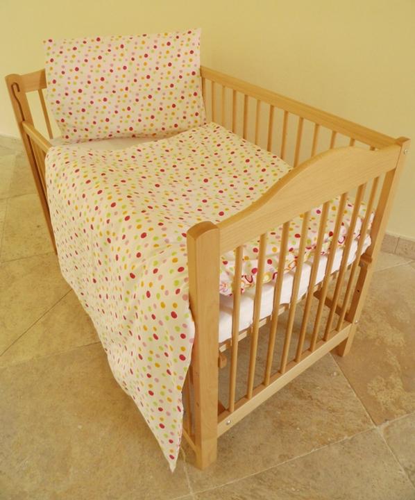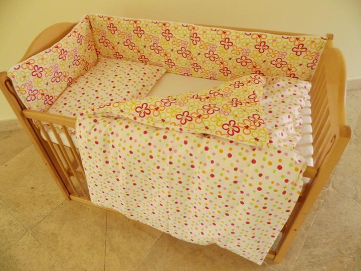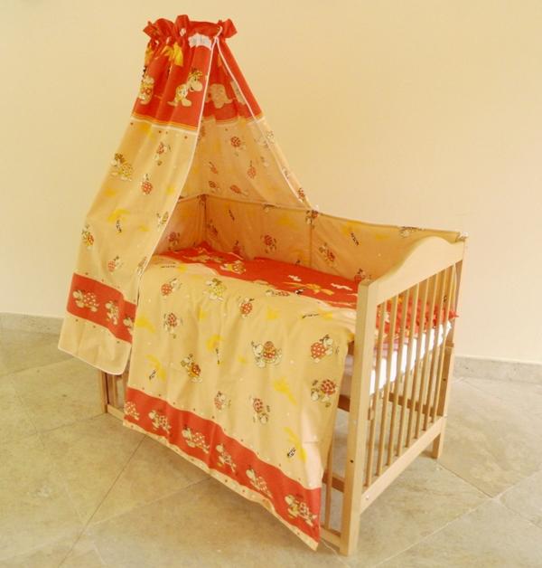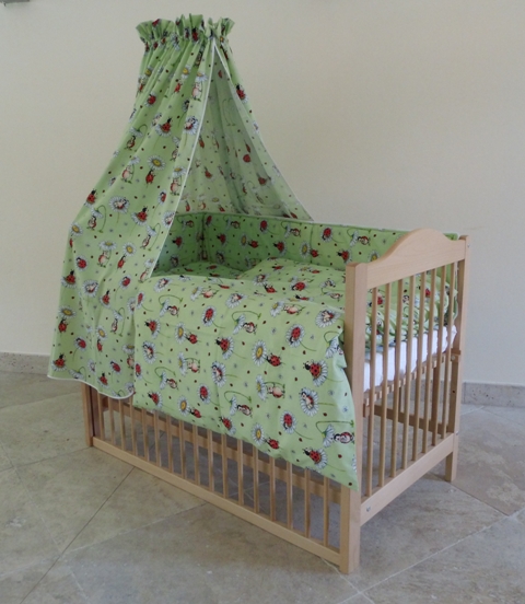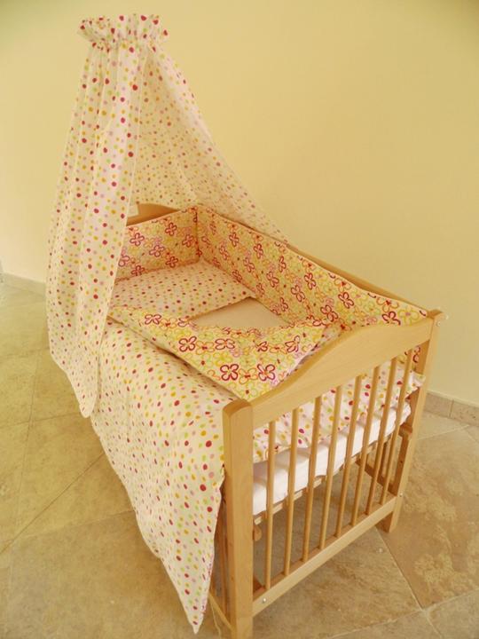 Vyrábame detský bytový textil ako sú sety do detských postielok – 2,3,4,5 a 6 dielne , zavinovačky – suchý zips + viazanie + vrecko na kokosovú vložku, kapsáre na detskú postielku , zásobníky na plienky , plachty napínacie s gumou bavlna, jersey, frote, nepremokavé plachty a podložky jersey a frote, vložky do zavinovačiek , vložky do detských stoličiek, ochranné hniezda v rozmeroch 180, 240 a 360cm s výškou 30cm , ortopedické nohavičky.