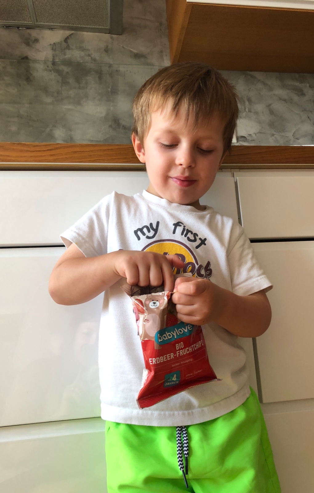Druhú vec, ktorú si vybral (dosť ma to prekvapilo, že si ten nezvolil ako prvý 😅), bol 100 % JABLKOVÝ DŽÚS babylove. Keďže džús mal 2x v živote, a to raz na narodeniny a raz za odmenu za turistiku, tak bol veľmi spokojný so mnou, že som mu ho dovolila 😁 Samozrejme, že mu chutil, chcela som nám spraviť peknú naaranžovanú fotečku s džúsikom na teraske, ale kým som našla slamky a priniesla poháre, bolo po ňom 😅 S mojím manželom ho vypili rovno z fľaše.