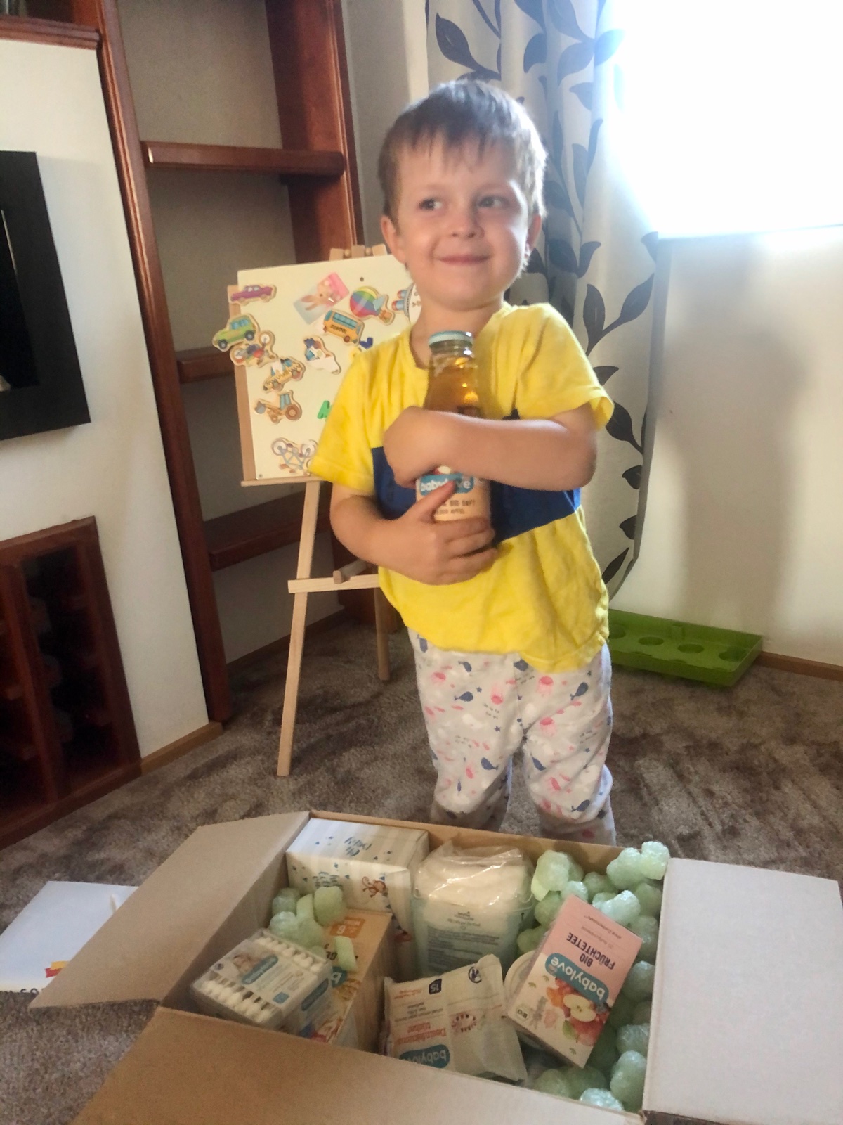 O pár dní mi zazvonil telefón a ozval sa tam kuriér, vedela som, že čo mi to nesie 🙂 Bola som úplne nedočkavá, kedy si balík prevezmem. Keď som s ním vošla dnu, tak syn okamžite išiel pátrať, že čo to tu máme, takže som mala pomocníka pri rozbaľovaní. Už aj to bolo veselé - taký bol chutnučký, ako sa tešil z každej jednej veci, ktorú z krabice vytiahol 🙂