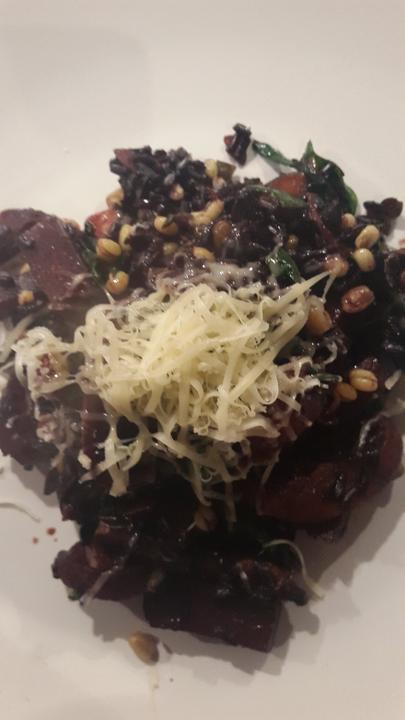 rizoto z ciernej ryze-cibula,huby,cuketa,baby spenat,mung fazule