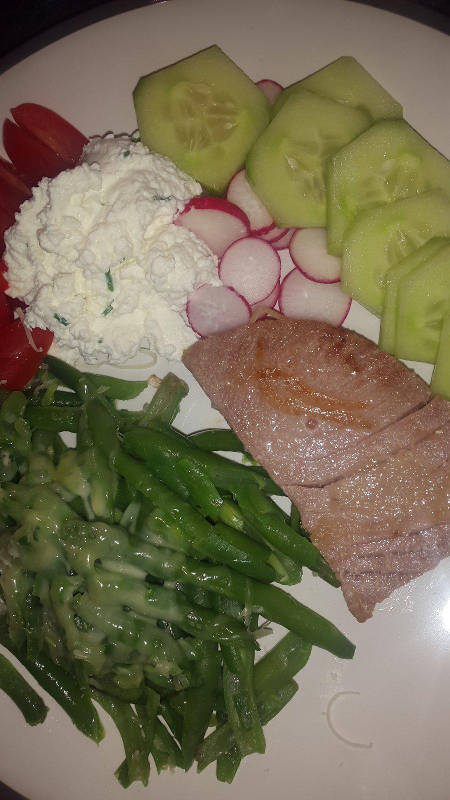 Tuniak, tvaroh, faz. struky, zelenina