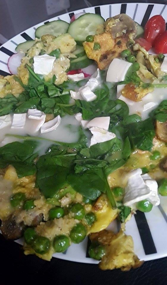 rychla #vecera omeleta s vlockami,zeleninou a kozim syrom