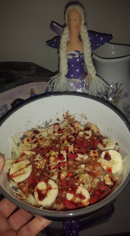 vlocky,chia,sojove mlieko,ovocie,orechy,skorica,datlovy sirup