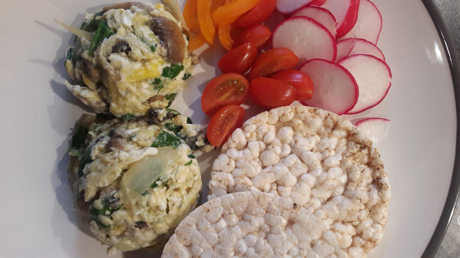 prazenica na cibulke s hubami a spenatom
