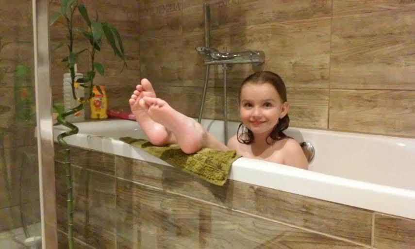 Toto je Kiara, nas maly vodnik... i ked ona tvrdi, ze je morska panna, pre mna je vodnik, vsak kazdy vidi tie dve laby :D Ma 5 rokov, 124cm a 27 kg. Ano, je velka na svoj vek. Nie, nie je tucna, aj ked stehienka ma fajne, ako mi hovorime: "mali by sme co opekat''. Nenavleciem na nu nohavice a uz vobec nie rifle, lebo jej to vsetko "ide do ritky'', no a tato ritka je nas velky problem, hlavne v tychto horucavach a to zapareniny (nie, plienky uz nenosi od 2 r). Zatial som vyskusala dva kremy, teraz mam v rukach nieco nove pre mna - Floceta, no uvidime...