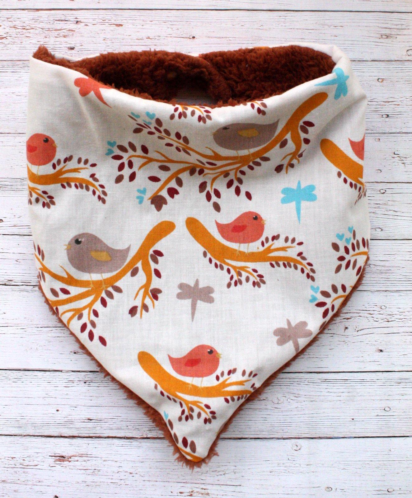 Ovečková zimná šatka s vtáčikmi
