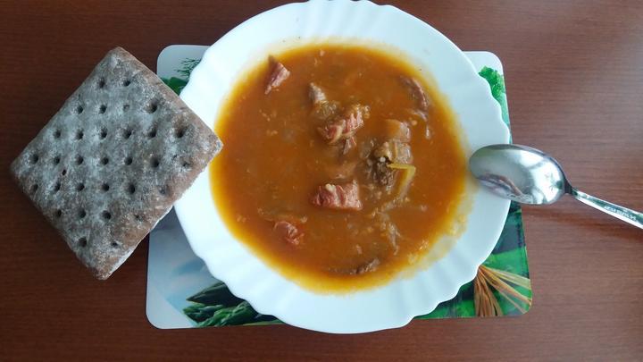 Prvý ochutnávač bol mužíček a dostal kapustnicu s BIO Ražnou kockou. Po prvých dojmoch teda nevyzeral nadšene...