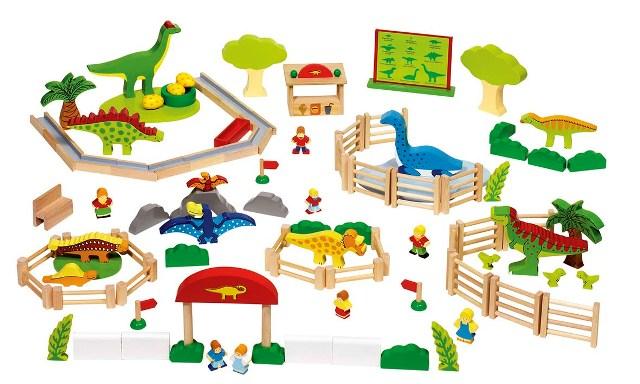 134 drevených figúrok kone a stajňa, alebo 96 dielikov dinosaurov, e-shop rozumnehracky.sk
