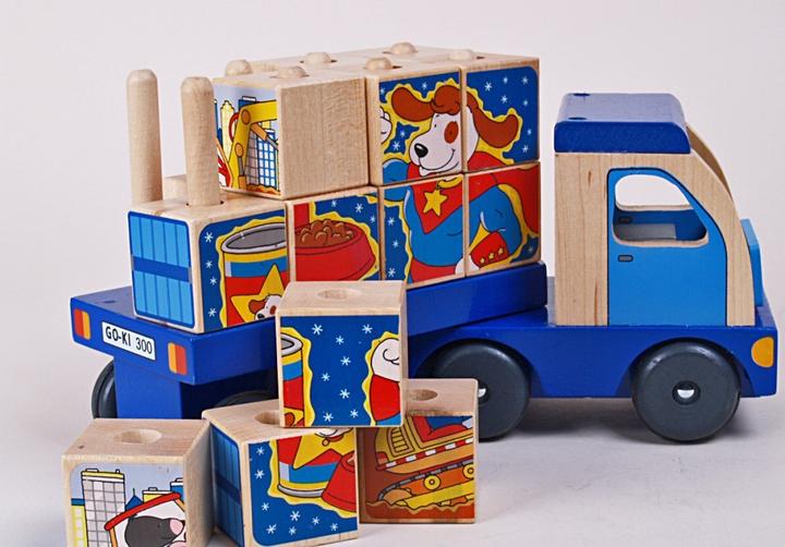 Nákladné auto z masívneho dreva so 16 nasúvacími kockami, dajú sa vytvoriť 4 motívy 3+, nájdete v e-shope rozumnehracky.sk - -