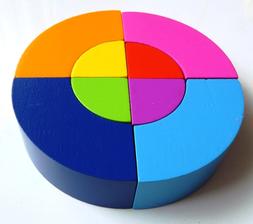 Drevené kocky a hlavolam v jednom pre deti od 2 rokov. Vďaka štvrťkruhovým tvarom sa dá postaviť aj 3D kocka, e-shop rozumnehracky.sk
