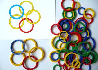 Drevené kruhy 60ks, obojstranné predlohy 24 ks - na spoznávanie farieb, čo je menší kruh, čo je väčší kruh, čo je vpredu, vzadu, čo je nad, pod,rozumnehracky.sk