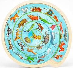 Kruhové drevené puzzle, každá časť je iná, má inú veľkosť, iný oblúk, takže dieťa sa tu dostáva aj do styku s geometriou, e-shop rozumnehracky.sk