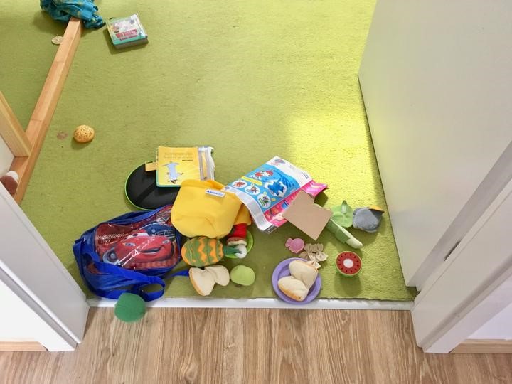 - Hanka (2 r.) chcela maľovať, tak som jej povedala, že pastelky jej dám až vtedy, keď si odprace všetky hračky z obývačky do izby...
