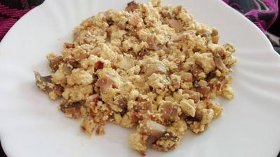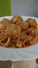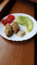 @bibyke v hraške (kúpiš v DM-ke alebo Bio obchode), alebo urobim nejaké cestičko (múka, rastl.mlieko/voda, koreniny, horčica...) ale dá sa aj v trojobale - muka, namiesto vajca ide múka s vodou kurkumou a soľou a strúhanka. Ale trojobal som neskusala ešte.
