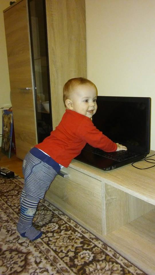 A už sme sa pekne postavili 🙂 len škoda že hneď pri PC 🙂 už od mala nás elektronika zaujíma 🙂 🙂 a ten úškrn 🙂 🙂