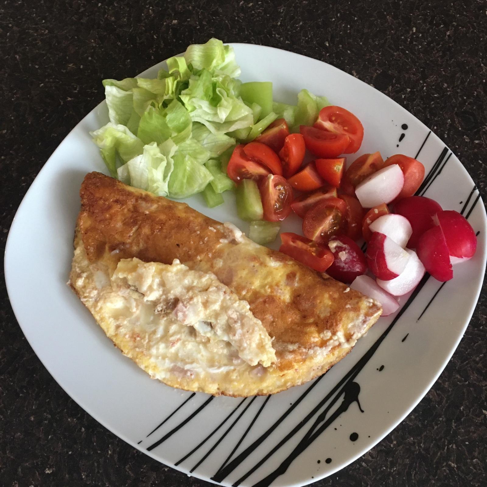 Omeleta so šunkou, plnená cotagge cheesom