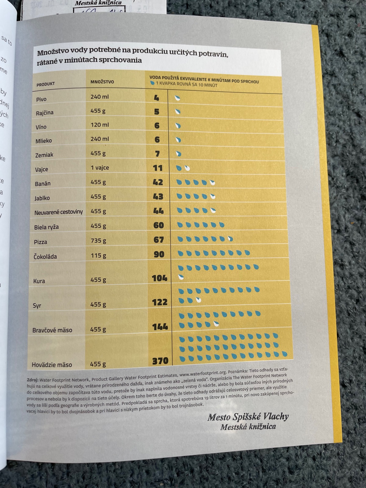 A ešte vám tu pridám jednu tabuľku, kde je uvedené koľko vody sa sprostrebuje pri spracovaní potravín
