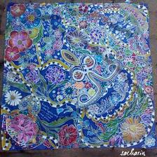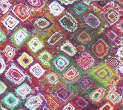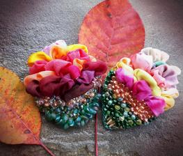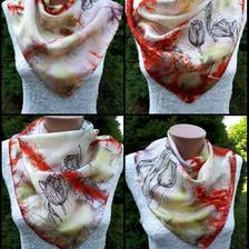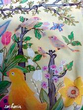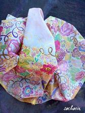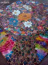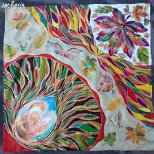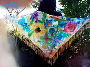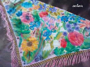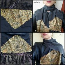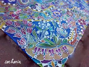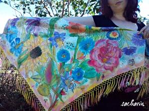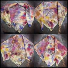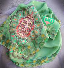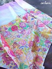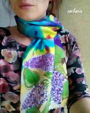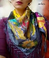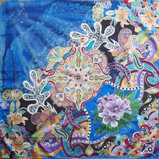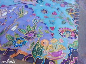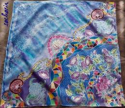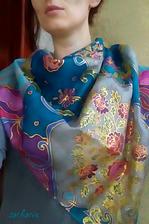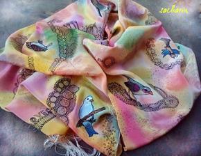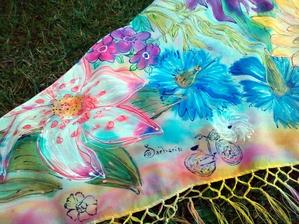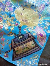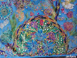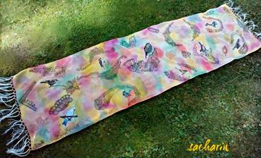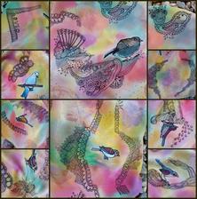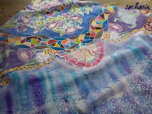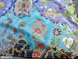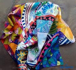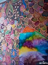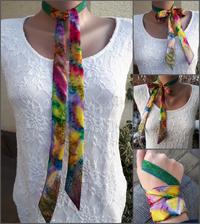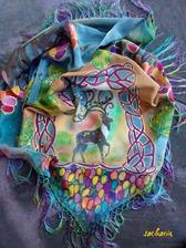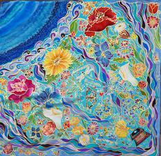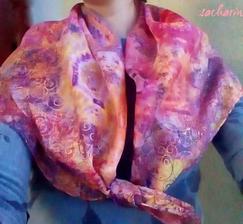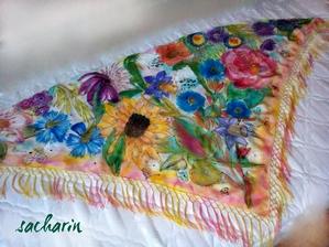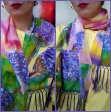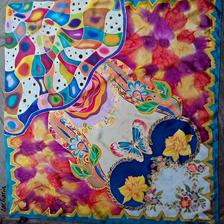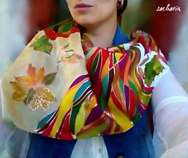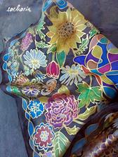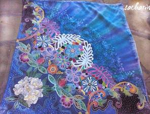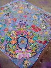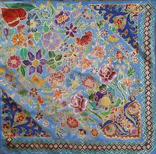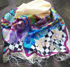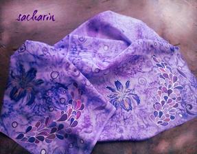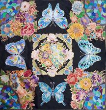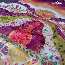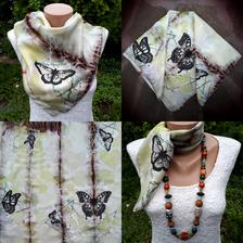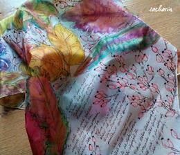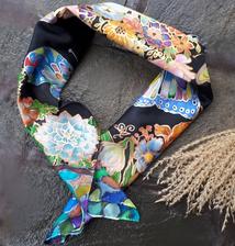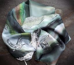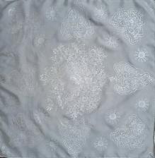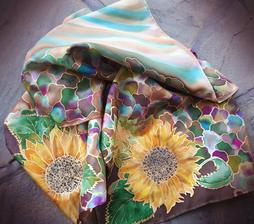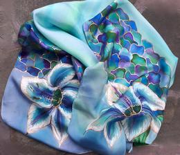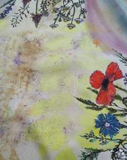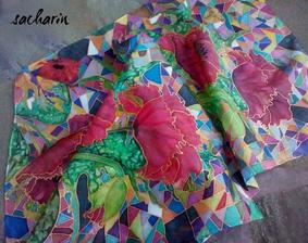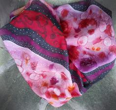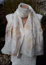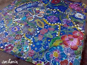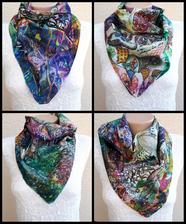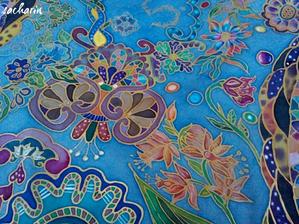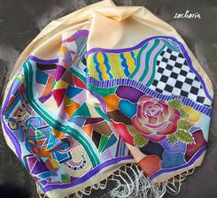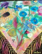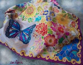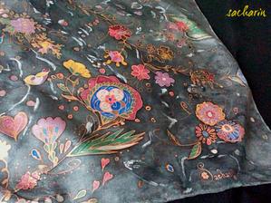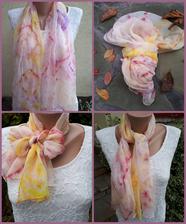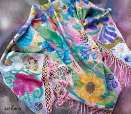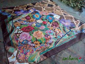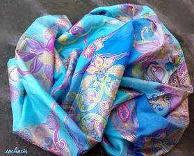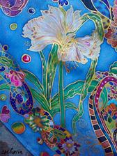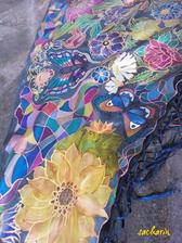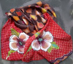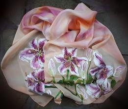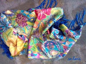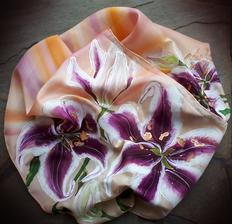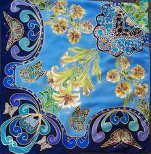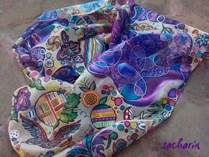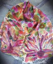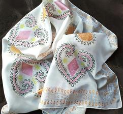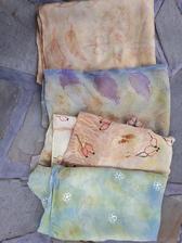 Prírodný hodváb v rôznych rozmeroch, štruktúrach a hrúbkach, ručne guttovaný, maľovaný, či zdobený inými technikami.