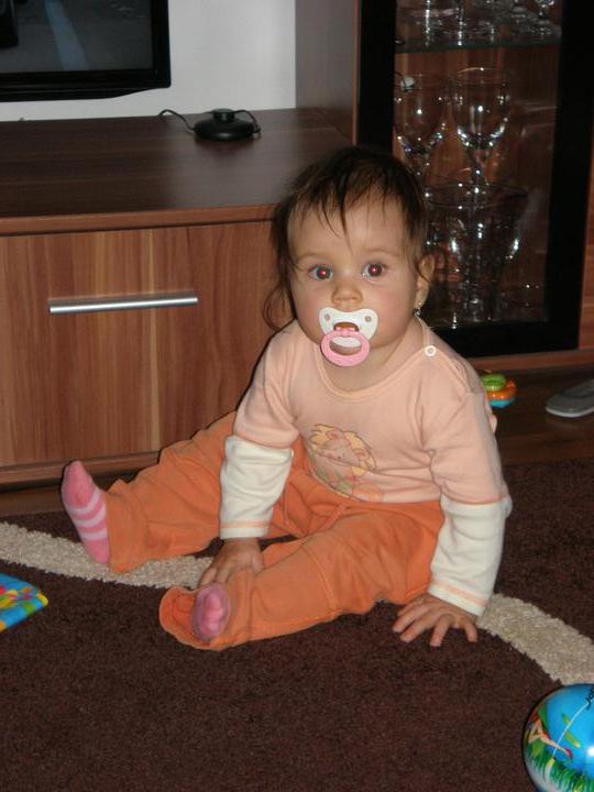 Taak naše zlatíčko má už 9 mesiacov...Poriadne nám zmenila život a my sme za to nesmierne vdační... Strašne ta lubime 🙂) už vieme sediet.stát,chodit okolo nábytku,plazit,štvornožkovat,válat sudy,vie ovedat mama,tata,baba,deda, teta,pa a eee...a ešte som zabudla už chodíme krásne na nočník je to naša šikulka..