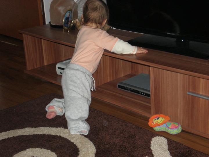 Babyyyy ta moja mala dnes lezie ako tajfun a ešte aby sa nenudila dvíha sa na kolienka a chce sa postavit ....Najviac sa jej páči otvárat šuflíky a rozhadzovat granulky v miske ...Škoda že otecko o všetko toto krásne príde ☹