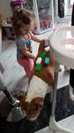 a druha vec, nerada citam, ze "mojmu psovi mozu robit deti cokolvek, necha si". netreba skusat hranice ani trpezlivost psa. ano, za normalnych okolnosti pes na konci svorky necha do seba babrat alebo ujde, ale kedze je toto svorka umela a nie sme vo volnej prirode, pes sa nemusi spravat stale predvidatelne. nikdy som nenechala detom testovať vydrz psa. vzdy som sa snazila predchadzat takym situaciam a ak uz sa nieco take stalo, pokarhala som dieta pred psom a pochvalila psa za dobru reakciu. samozrejme dennodenne pes musel citit, ze na prvom mieste su deti a potom on (hlavne co sa tyka jedla), ale nedavat priestor na ziarlivost.