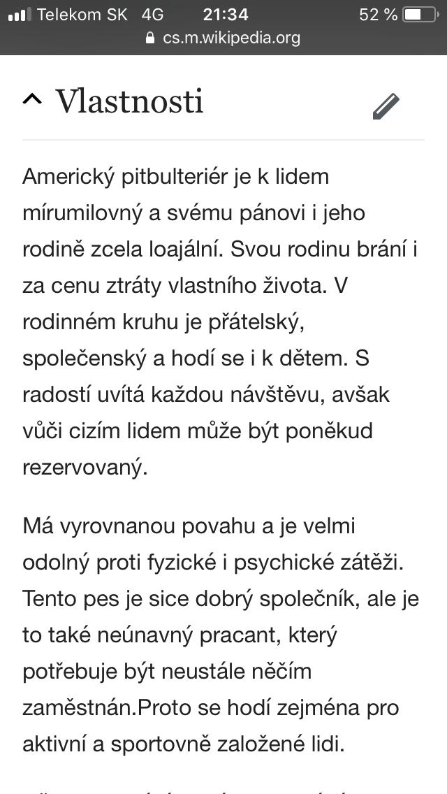 Takže konečne mám čas vyjadriť sa aj ja 😄 Vôbec sa nebojím nechať ich s malou samých, pretože malá sa vačšinou hrá a pes spí pri nej. Okrem toho môžem povedať, že je naučenýa poslúcha na slovo. Keď ho zavoláme hneď príde. Nikdy sa so žiadnym psom nepobil, keďže sme ho od malička socializovali, dokonca nič neurobil ani keď sa do neho pustil druhý pes. Bohužial v dnešnej dobe majú ľudia pocit, že malé plemená výchovu nepotrebujú, lebo su jak plyšáky. Ale potrebujú, pretože sú malé a zakomplexované, preto najčastejšie zúria oni. Nie raz sa nám stalo, že sme íšli so psom pri hrádzu kde každý chodí venčiť psov. Videli sme, že sú tam 2 ženy s nejakým mslým psom tak sme dali nášho na vodítko. Oni to videli tak už nepovazovali za potrebné dať na vodítko aj toho ich psa. Ten sa ku nam zurivo rozbehol a stekal po nás jak besný. Oni si pekným pomalým krokom išli pre neho, lebo zbytocne po nom vykrikovali, proste ich mal na haku. Náď pes mu nič neurobil sni napriek tomu. Keď sa ho jedns snažila pripnúť na vodítko tak chňspol ešte aj po nej 😏 ďalšia vec, mali sme doma aj zajačika, ten sa voľne pohybovsl po byte aj spolu so psom kým sme boli aj v robote. Nikdy mu oes nič neurobil a to ho zajac chodil provokovať a kusať ho do nosa 😄 Okrem toho moj priatel odmalička vyrastal s pitbullmi a stafordmi, lebo ich chovali, niekolko rokov, takže skúsenosti s vychovou týchto plemiem má doststocnu. Dokonca už bude mať 36 rokov a nikdy ho žiadny z ich pitbullov neuhryzol a to ich mali niekoľko😄 Takže môže ma hocikto presviedčať o opaku, ale ja na tieto psy nedám dopustiť. Ak pes napadne, hocijaký pes, zlyhal majiteľ s výchovou. Pes musí mať poriadnu výchovu a vedieť, kde je jeho miesto vo svorke 😊