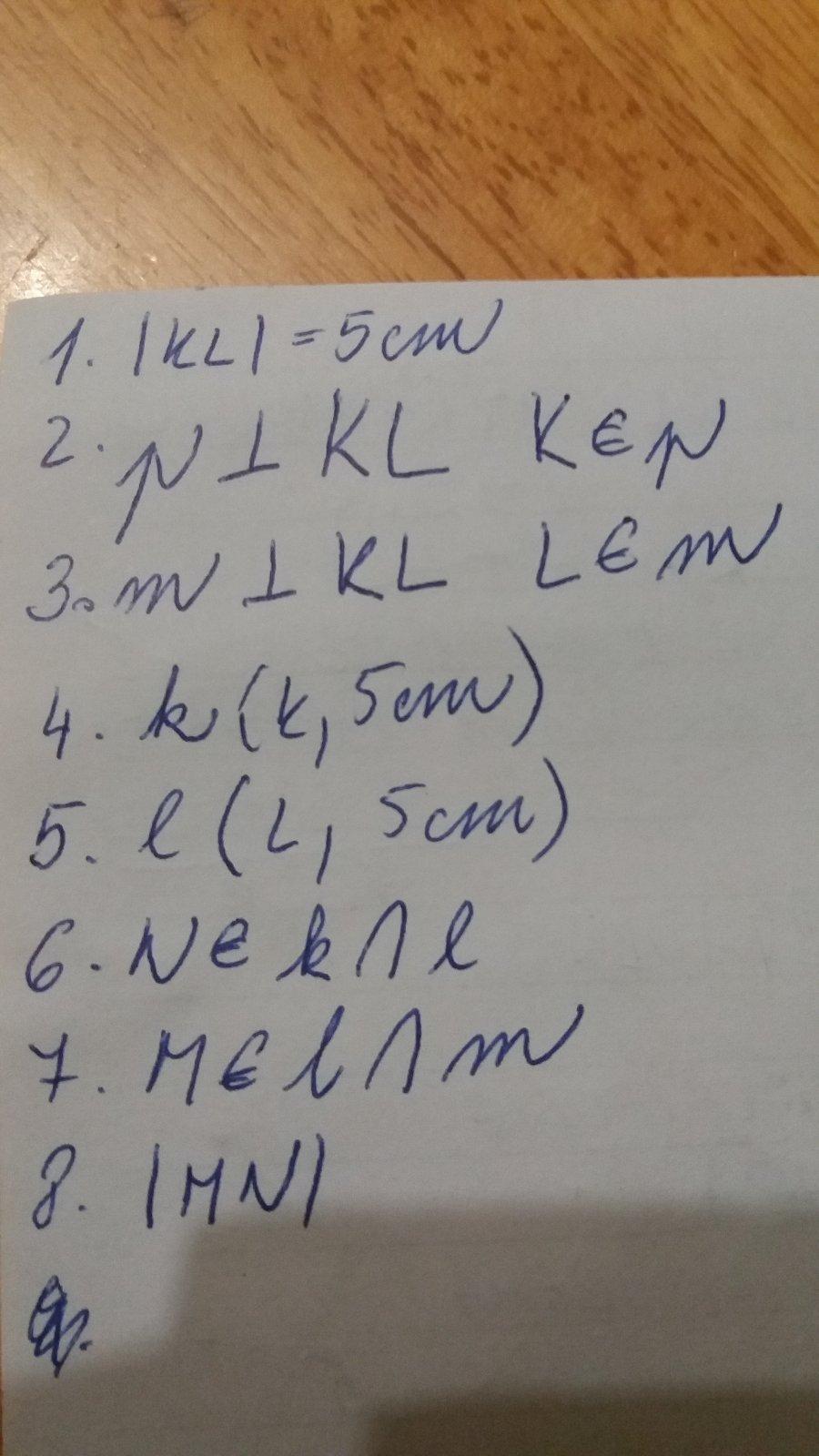 A na tvoju poslednu otazku o oznaceni kruznice - kruznica sa zadava presne tak, ako je to tam napisane v tom danuskinom postupe - jej nazov a do zatvorky najprv stred a za ciarku jej polomer. V zvislych ciarach sa dava len napr velkost usecky, uhla, vzdialenost bodu od priamky a pod. Tie ciselne udaje nie su velkost kruznice, je to polomer a ten na narysovanie kruznice nestaci, treba zadat aj jej stred.