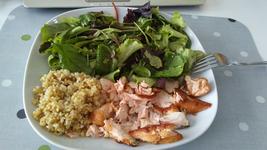 Losos, zmes salatu a dresing ( med,horcica, citron, oliv.olej ) a bulgur. ... pre mna mnamka