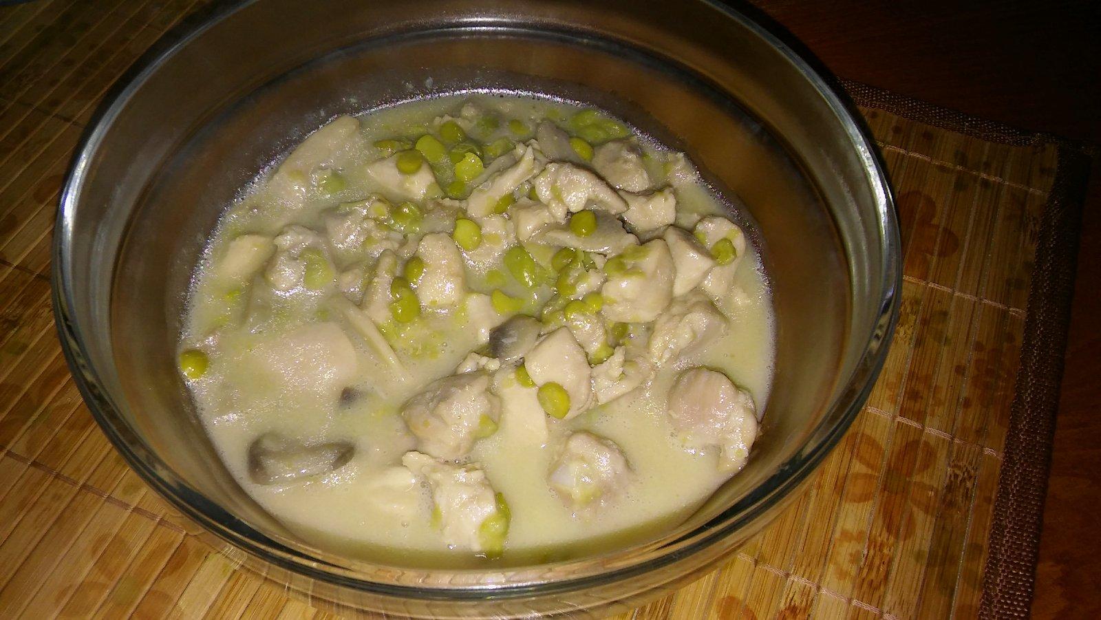 kuracinka,hrasok a sampioniky v kokos.mlieku