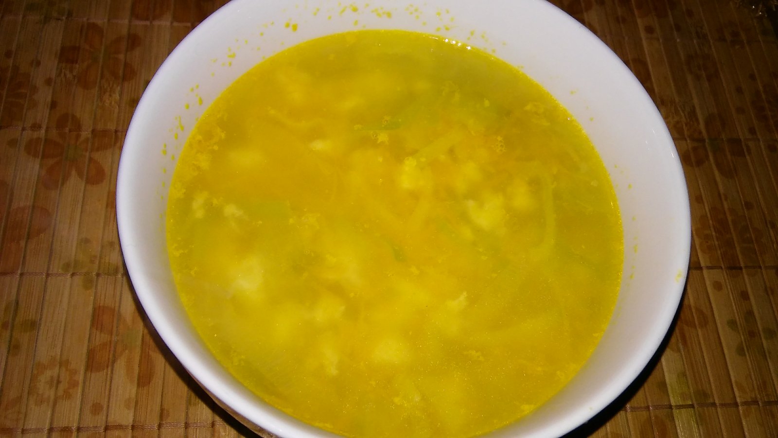 porikovo-mrkvickovo-hraskova polievocka zahustena halustickami z kukuricnej krupicky