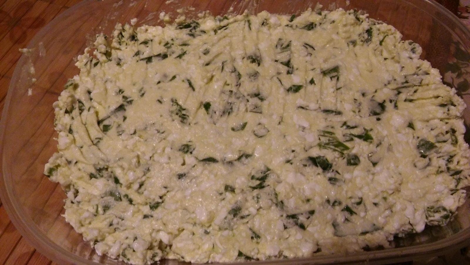 pomazanka z medvedieho cesnaku z toho co doma ostalo...vela toho nebolo-polka tvarohu,trocha masla a medvedicesnacik.chuti aj mojmu synovi 👌