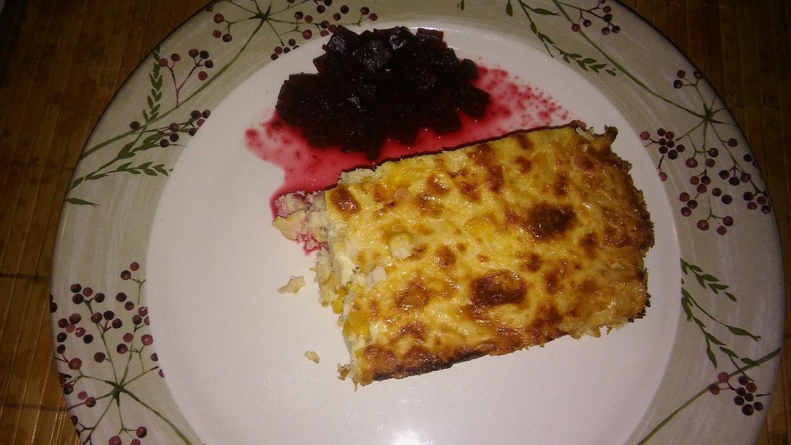 veeelmi rychla fotka 😋 karfiol,sunka,syr,kukurica,vajicka a hore trocha smotanky.zapiect