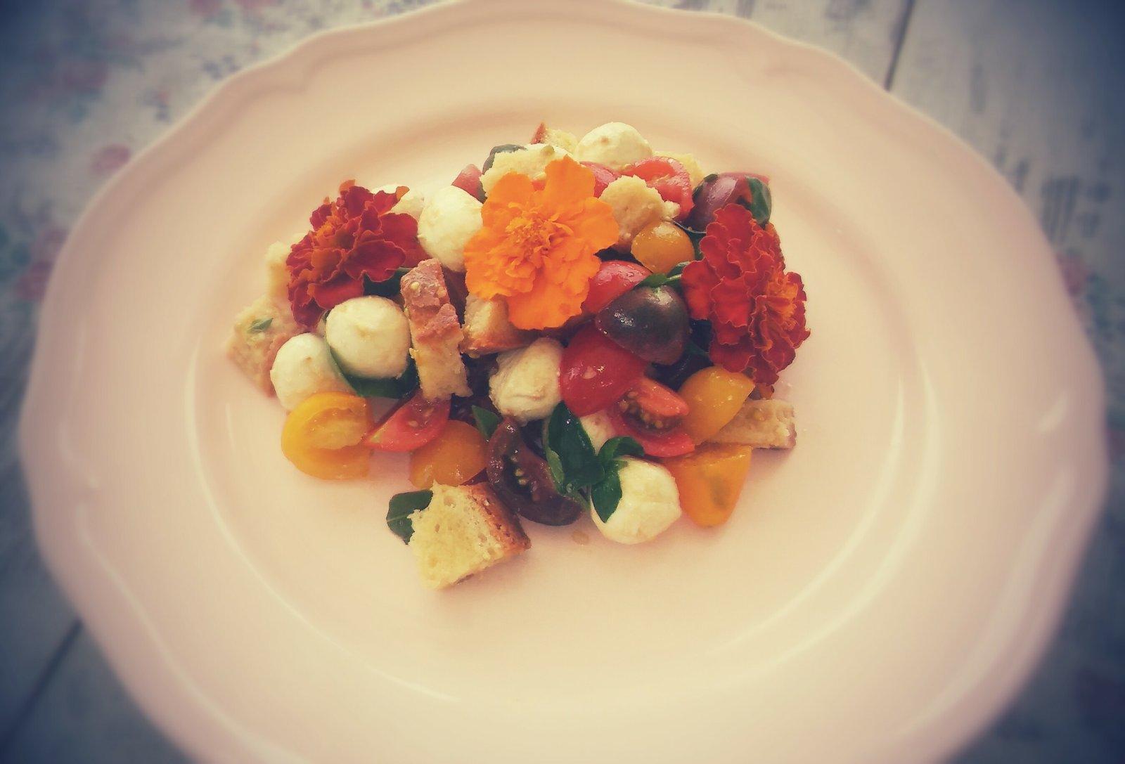 cherry rajcinky 3 farieb z nasej zahradky,syrik a krutonky zo spaldoveho chlebika,co som piekla rano