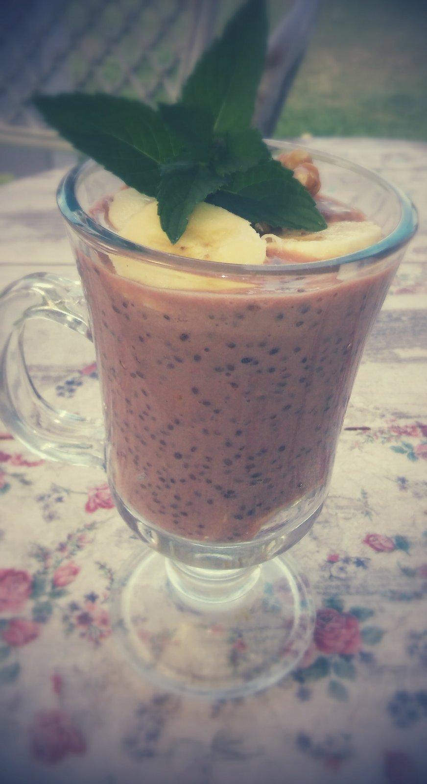 dnes som si pripomenula detstvo a bebe puding..ale v zdravsej forme.mliecko,banan a kakao rozmixovala,nasypala chia..nechala zatuhnut.navrstvila banan,orechy puding a mnaaam