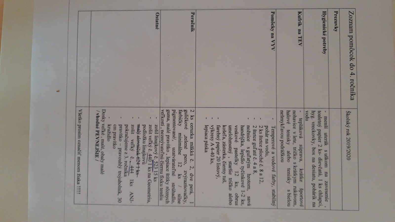 Na webovej stranky školy u nas vychádzajú zoznamy pomocok
