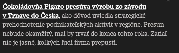 @negymama Firmy se stěhují i z důvodu distribuce. Značka Figaro je lokální prodejce hlavně v SR a ČR. A ČR má dvojnásobný trh a navíc zde klesá prodej značek Orion a Milka. Takže i to je důvod. Stejně jako čokoláda Milka se také nevyrábí jen ve Švýcarsku.
