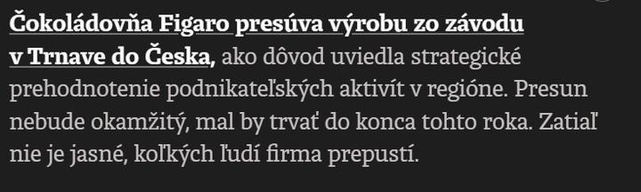 @janinah zahranicne firmy optimalizuju kde sa da, presuvaju vyroby do inych krajin hlavne pre znizenie nakladov a tym padom vyssie vlastne zisky. Nie preto, ze je tu Fico alebo taka alebo onaka vlada.