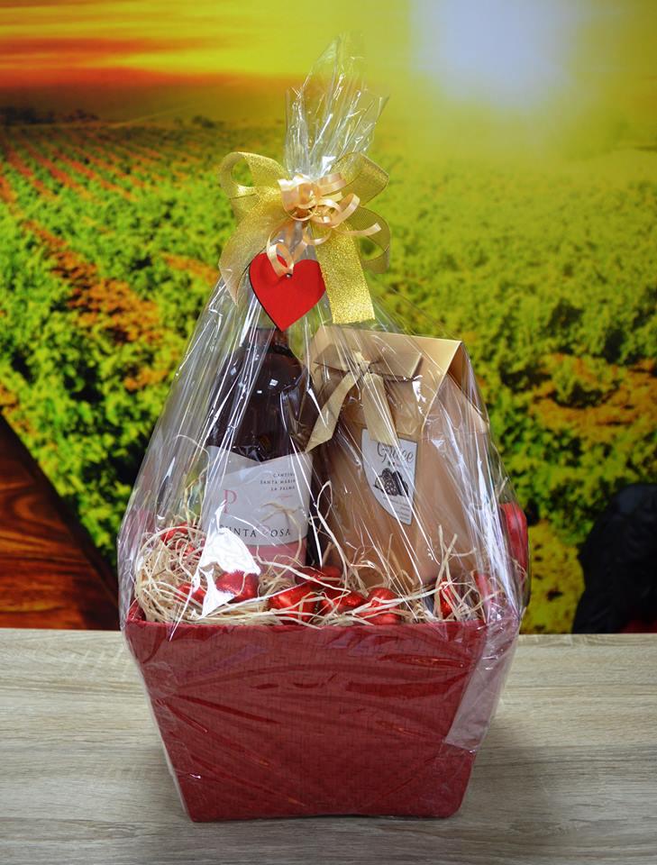 Romantický darčekový kôš. Cena cca: 22 € (záleží na obsahu košíka a na dohode s klientom)
