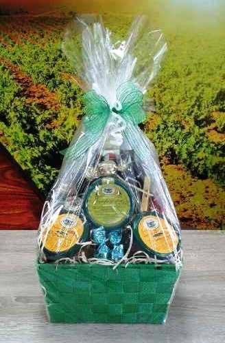 Darčekový kôš pre muža. V krásnom zelenom košíku sú zbalené dva druhy vína, bonbóny, olivy, čokoláda, grilované nakladané hríby, cibuľky, paradajky, oregánový sardínsky chlieb - výborná slaná pochutina Cena cca: 40€ (záleží na obsahu košíka)