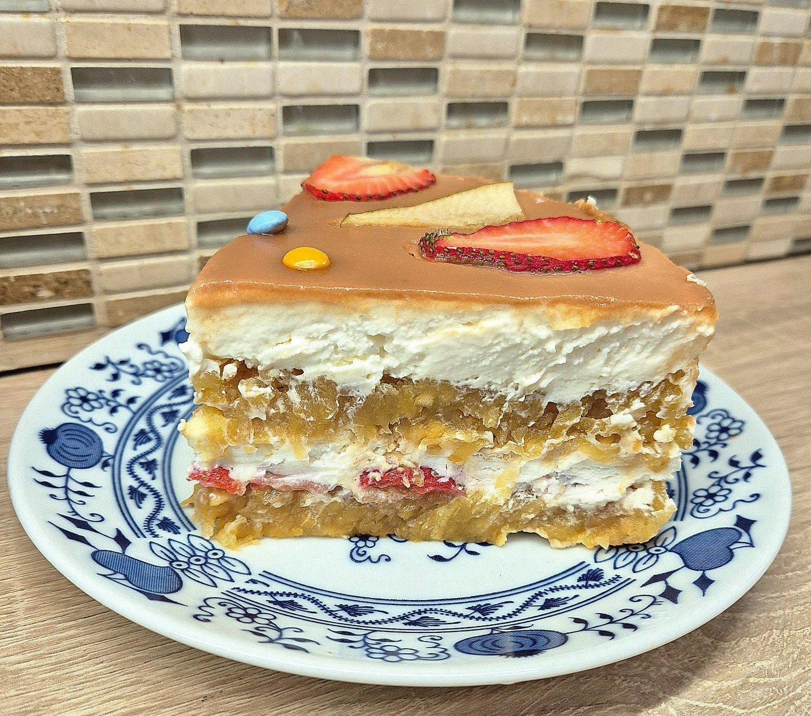 autorAhojte, recept je na 20cm korpus. Spodna vrstva bebe keksy a na to ide vrstva postruhanych jablcok povarenych s 2 zlatymi klasmi (pred tym rozhabarkovat v troske vody) a vanilk cukrom. Na to ide plnka (polka) z vyslahanej smotany 100ml, smetafixu, mascarpone 250g, pr cukru a 500g jemneho tvarohu. Na to bebe keksy, jablkova cast, druha polka tvarohovej plnky a to karamel urobeny vo vode s cukrom, kde sa po skaramelizovani pridala smotana. Nechame stuhnut cez noc. Chutovo je kolacik vyborny 🙂