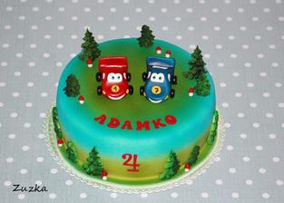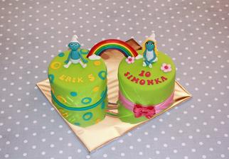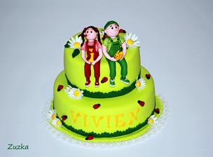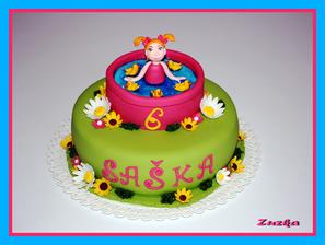 No tie sú fakt úžasné, obdivujem ako to pri deťoch stíhate, ja som tiež začala piecť asi pred dvomi rokmi a teraz som na materskej a zlomili ma na jednu tortu a viem že tak skoro sa zas na to nedám, aj keď ma to veľmi baví, bola zaangažovaná celá rodina. Keby manžel neupiekol rybku tak by sme ani nevečerali 🙂 MMF mám rada aj ja, vždy sa podarí a je super pružná, ale zaujímalo by ma ak to nie je tajomstvo ako dosiahnete také žiarivé farby, ak to nie je tajomstvo, hlavne tá zelená limetková je úžasná. Ja používam gelové wilton ale žiadnu žiarivú sa mi zatiaľ nepodarilo namiešať, najlepšie sa mi farbí White icing aj sa mi najlepšie s ňou robí. Tak ešte raz, klobúk dole nad tou jednoduchou nádherou, nech sa Vám darí 🙂