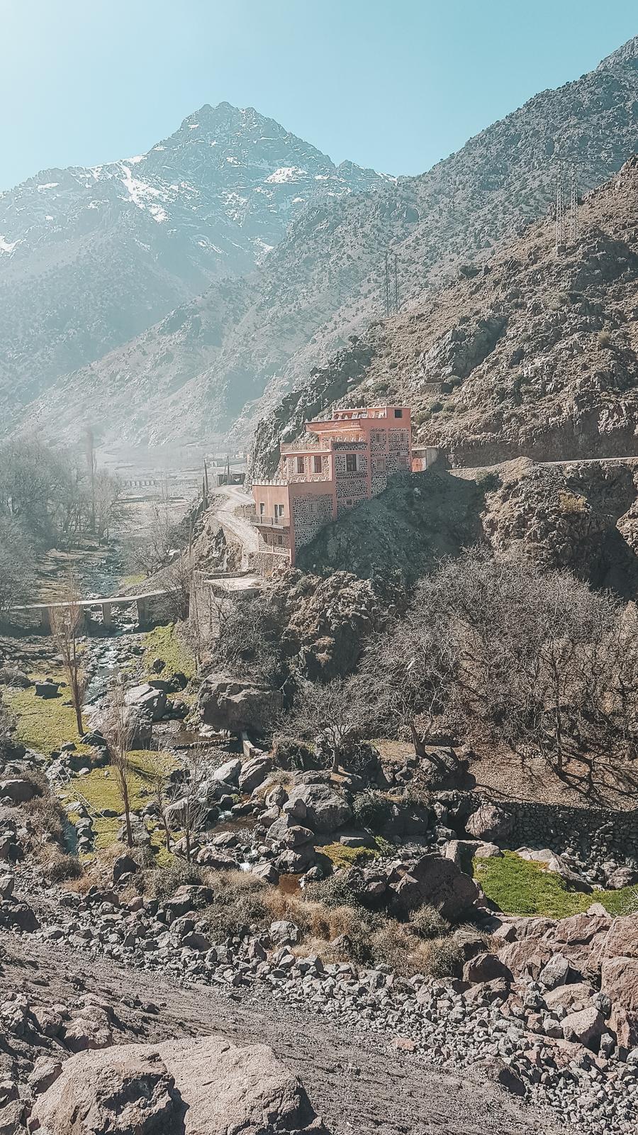 Už iba samotná cesta do Imlilu Vám zoberie dych. Keď sme tam prišli, cítila som sa, ako keby som sa vrátila v čase – somáre, mäso nehygienicky zavesené v obchodoch, skoro žiadni turisti. V Imlile bolo o poznanie chladnejšie ako v Marakéši, ale aj tak tam teplota vo februári cez deň dosahovala príjemných 20 stupňov. Večer však bol ozaj chladný. Ubytovali sme sa v Riad Atlas Prestige a toto ubytovanie môžem viac než odporučiť. K „hotelu“ sme museli dosť šliapať, ale rozhodne to stálo za to. Noc s raňajkami pre dve osoby nás vyšla na 25 eur a famózna trojchodová večera 8 eur na osobu. Ubytovanie bolo samo osebe krásne, ale najviac nás dostal úžasný prístup personálu, ktorý nám vo všetkom vyšiel v ústrety. V riade sme sa pri spoločnej večeri stretli s mladými angličanmi, babami z Nemecka a postaršími Poliakmi a veľmi fajn pokecali a čo to popili. Trošku mi to pripomenulo Erasmus vyššej vekovej kategórie.