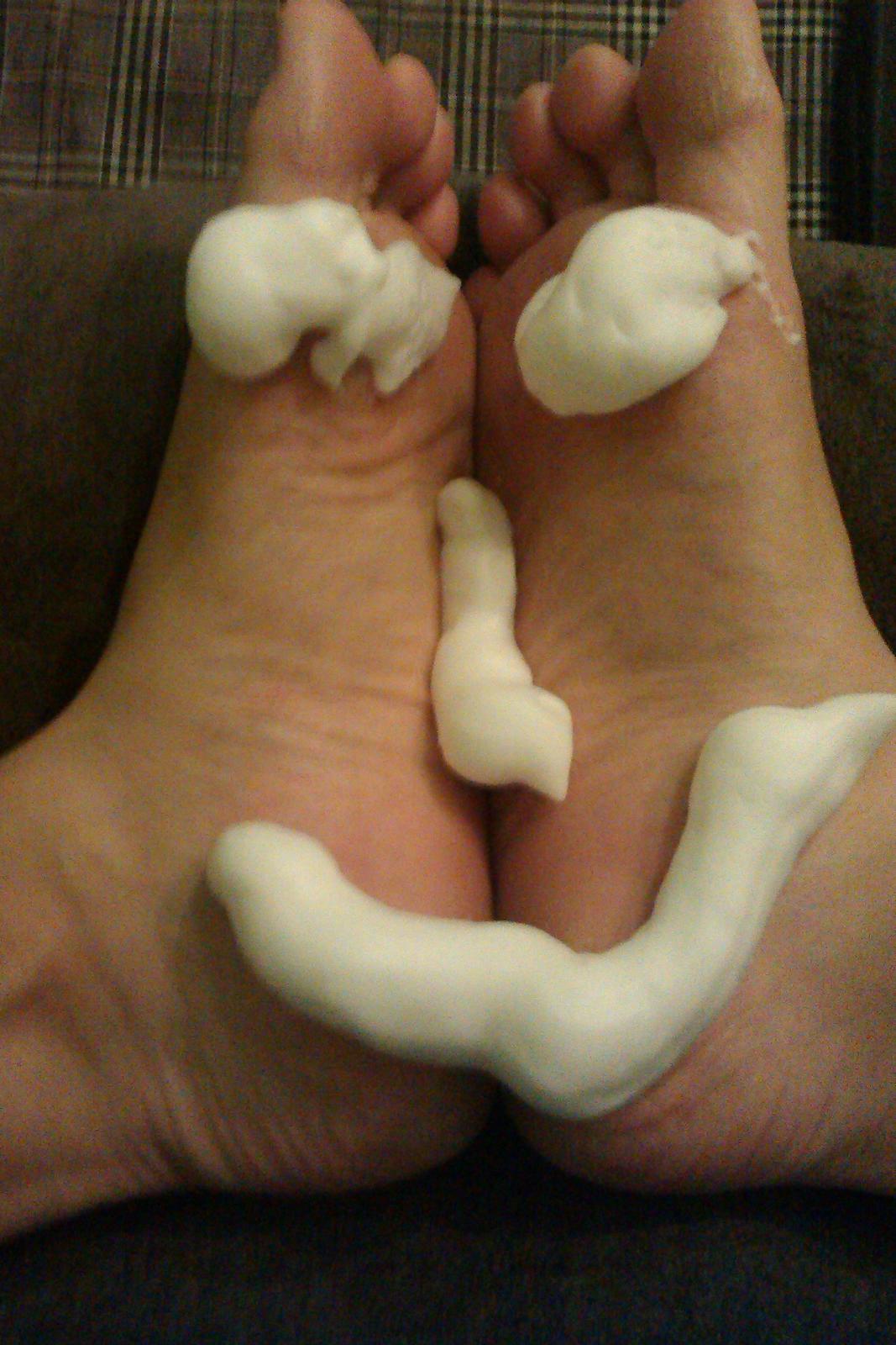 Zrazu bolo na mňa otázok priveľa, nestíhala som na všetky otázky tak pohotovo odpovedať. Pokým som sa spamätávala, staršia mi už stihla doniesť aj tanieriky. Vysvetlila som jej, že to žiaľ nieje šľahačka na jedenie, ale pena na nohy. Samozrejme chceli vyskúšať obe deti. Ako inak. Takto krásne mi skrášlili nohy.