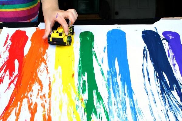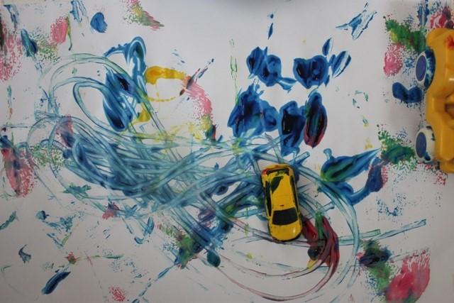 Chcete, aby sa vaše deti pri maľovaní poriadne vybláznili? Postavte pred nich autíčka, misku s farbou, výkres a zábava sa môže začať. Tým, že ide o trošku akčnejšiu aktivitu, ktorá má za zásluhu aj trochu väčší neporiadok na stole či podlahe, môžete ju zrealizovať pokojne vonku. Veď jar je už tu. Temperové farby nájdete tu: http://bit.ly/1SlUmAo