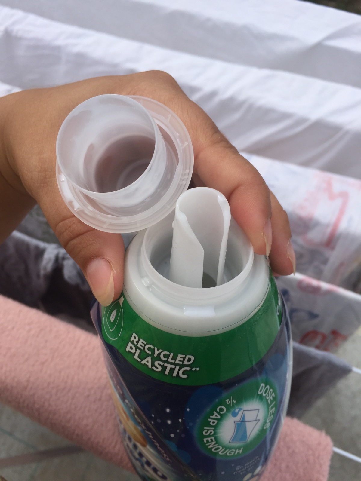 Trošku problém som mala s dávkovaním - podarilo sa mi obliať sa, keď som si nevšimla, že nemám správne otočenú flašku a vyliala som aviváž tou medzerou - takže odporúčam: “dvakrát meraj a raz rež” ;)