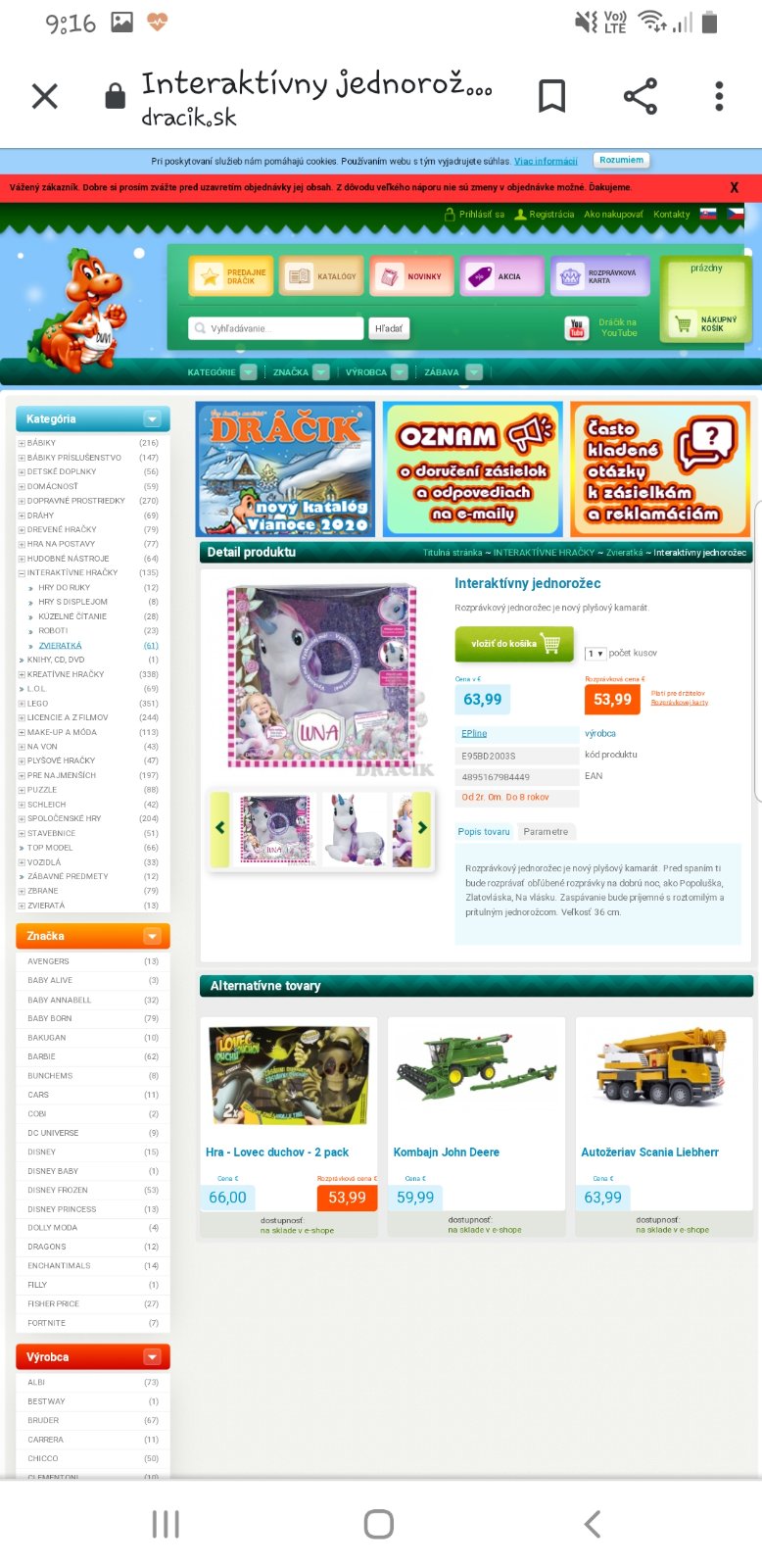 Pekne ranko 🙂 nahodou by ste nemali zľavový kód na Alzu? Alebo tip, kde v lepšej cene kúpiť jednorožca Lunu? Vďaka ❤️